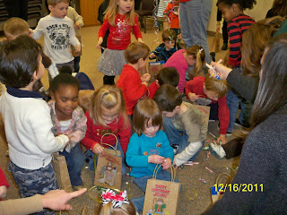 Because it was almost summer and we had boys and girls coming, I used buckets for the goody bags with balls, bubbles, and other small toys.